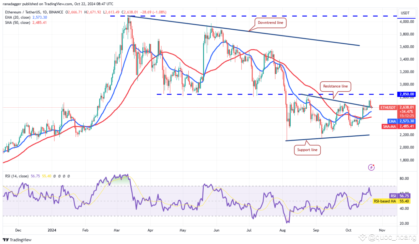 Ether (ETH) đã vượt qua đường kháng cự của mô hình tam giác đối xứng vào ngày 20/10, nhưng phe bò không thể đẩy giá lên $2.850.