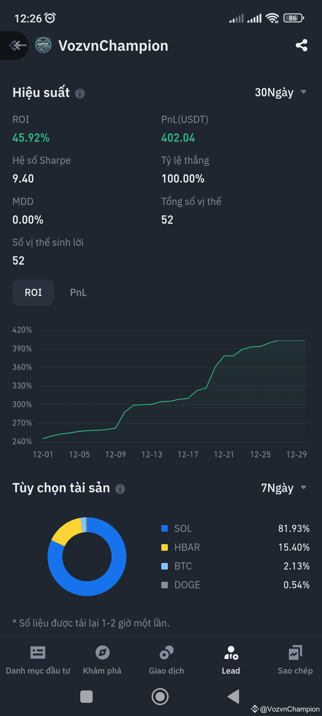 Roi 45.9%, 52/52 winrate 100%, top 2 Copier number, top 1 mdd, top 2 sharpe...