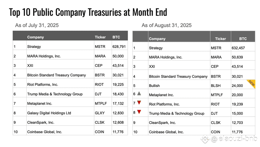 * دخلت شركة Bullish (BLSH) القائمة في أغسطس محتلة المركز الخامس بـ 24,000 بيتكوين، وهو دخول قوي ومثير للاهتمام. هذا يشير إلى أن شركات جديدة تتبنى البيتكوين على نطاق واسع.