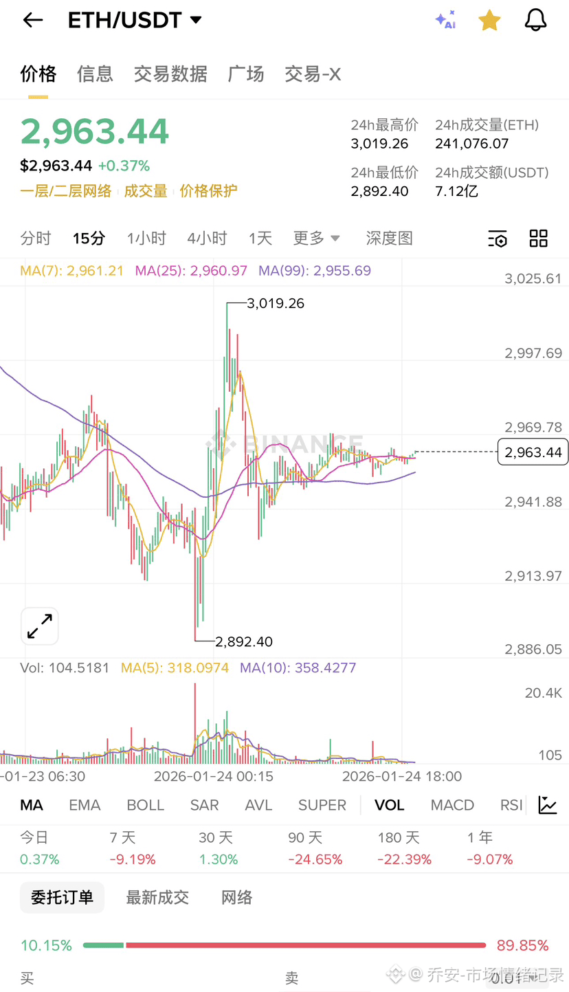 从图上看,ETH 当前价格在 2960 附近,整体结构非常有意思。