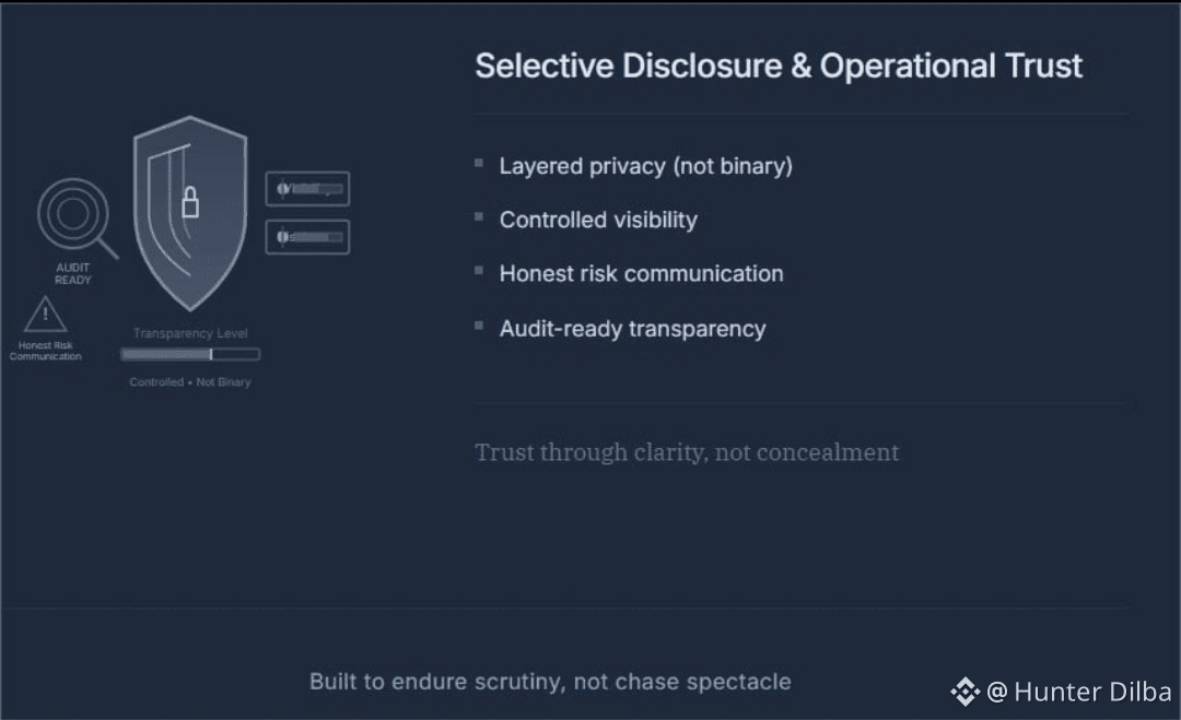 Without any critique, Other chains focused on throughput, total value locked, or user growth. Dusk optimizes for deterministic execution, controlled disclosure, and defensible audit. It’s clear to me Dusk is not competing with consumer focused chains. It’s positioned itself in the realm of internal ledgers, permissioned networks, and legacy settlement systems. It’s Dusk's design that takes the position that visibility is a liability, mistakes are expensive, and that accountability must be built into the system, not just added as a policy.