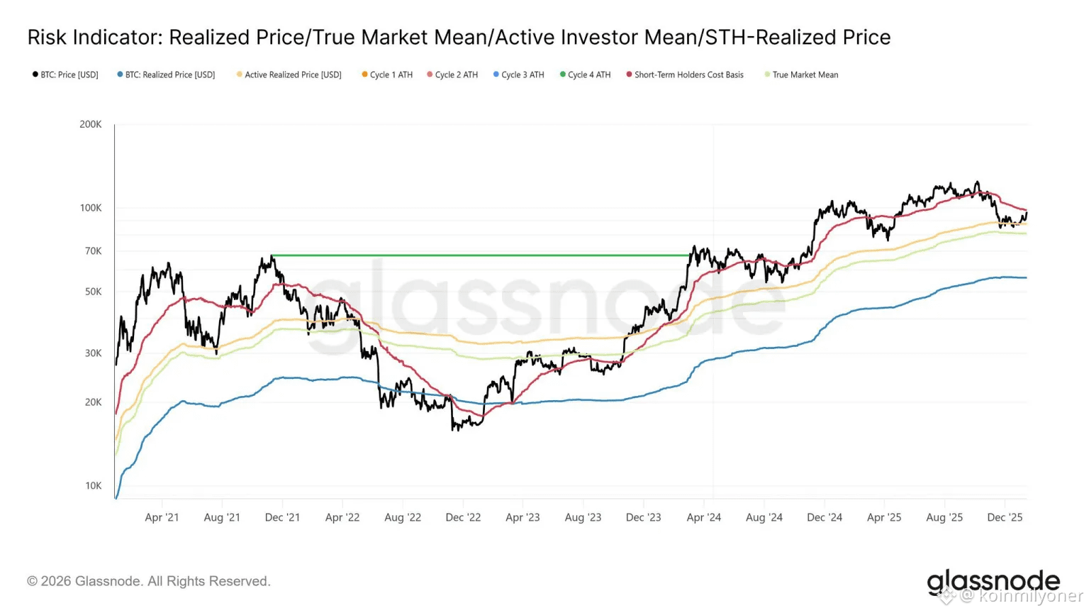 Upside isn’t easy either. The short-term holder cost basis sits near $96,500, meaning many recent buyers are underwater. If price rallies toward that zone, some may sell just to escape at smaller losses, creating overhead resistance. In other words, Bitcoin is squeezed between defensive buyers below and frustrated holders above. 😬