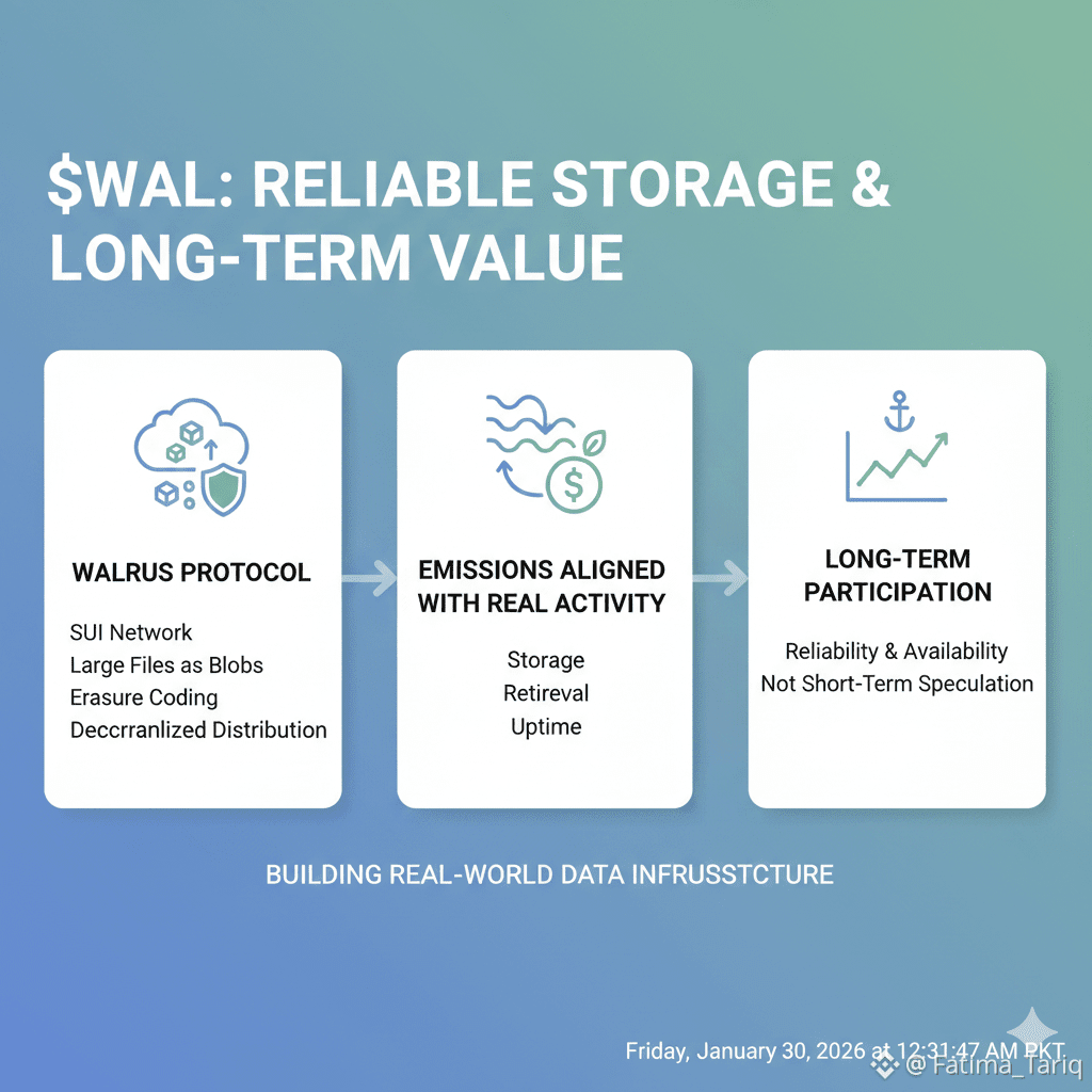 Instead of chasing hype cycles, Walrus aligns emissions with real network activity—storage, retrieval, and uptime.