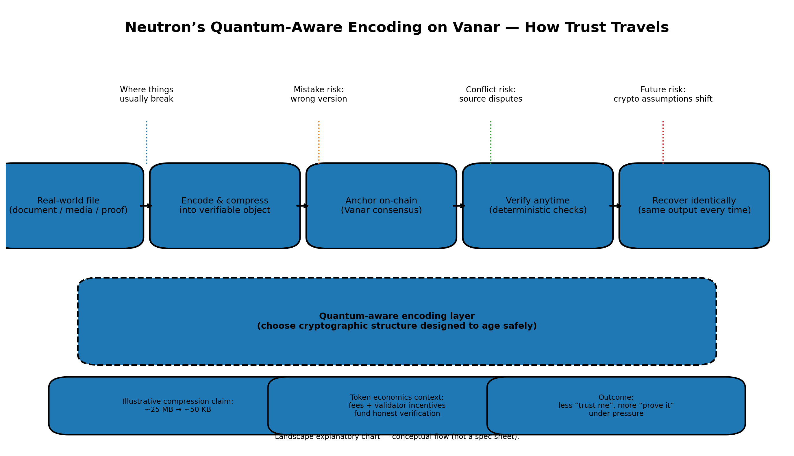 To understand why quantum-aware encoding matters in that flow, you have to follow how data actually breaks in real life. It rarely breaks because someone is evil in a movie-villain way. It breaks because systems are built around convenience and then stretched under stress. People upload a document once, assume it will stay reachable, and move on. Providers change terms, gateways rate-limit, teams rotate, and suddenly the “proof” becomes a scavenger hunt. Vanar’s Neutron narrative has leaned into a simple but heavy claim: if the chain is going to be the place where trust settles, the chain needs to carry more of the truth-bearing weight itself. That’s why they talk about compressing and restructuring files into something that can be stored directly and recovered deterministically, instead of leaving the most important part—content—outside the system.