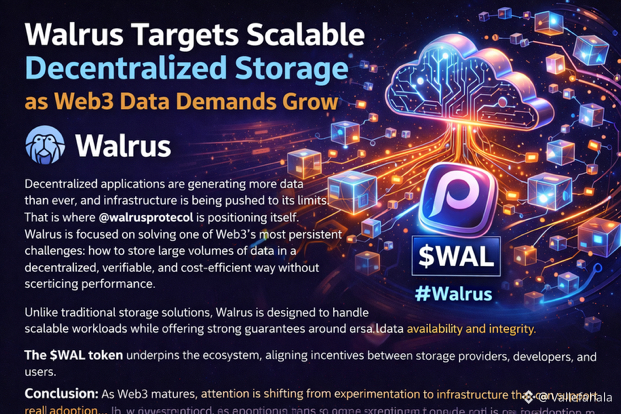 As Web3 matures, attention is shifting from experimentation to infrastructure that can support real adoption. By focusing on scalable and verifiable storage, @Walrus 🦭/acc is positioning Walrus as a foundational layer for the next generation of decentralized applications, with $WAL playing a central role in that evolution.#walrus