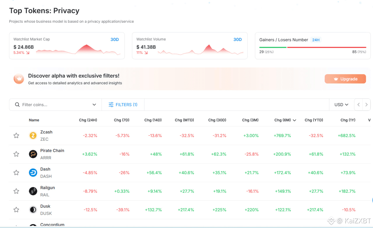 Ví dụ : Zcash đã tăng trưởng hàng chục lần, mình để ý lọt top gainer trên sàn Binance hàng ngày, hàng tuần kéo theo narrative “Privacy” bùng nổ.