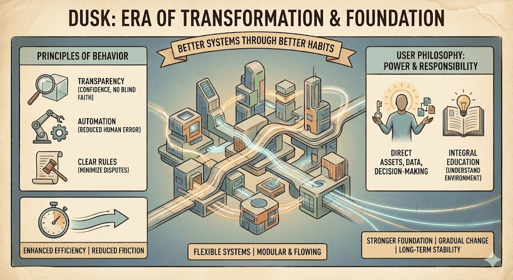 The technological and behavioral transformation resulting from Dusk will create better systems by promoting better habits through established principles of behavior. Transparency provides the foundation for confidence and minimizes the requirement for blind faith; automation reduces human error; and clear rules minimize disputes. Empirical evidence from environments that adopt these principles typically demonstrates enhanced operational efficiencies with reduced friction, as the length of time required to perform formerly lengthy tasks has significantly decreased.