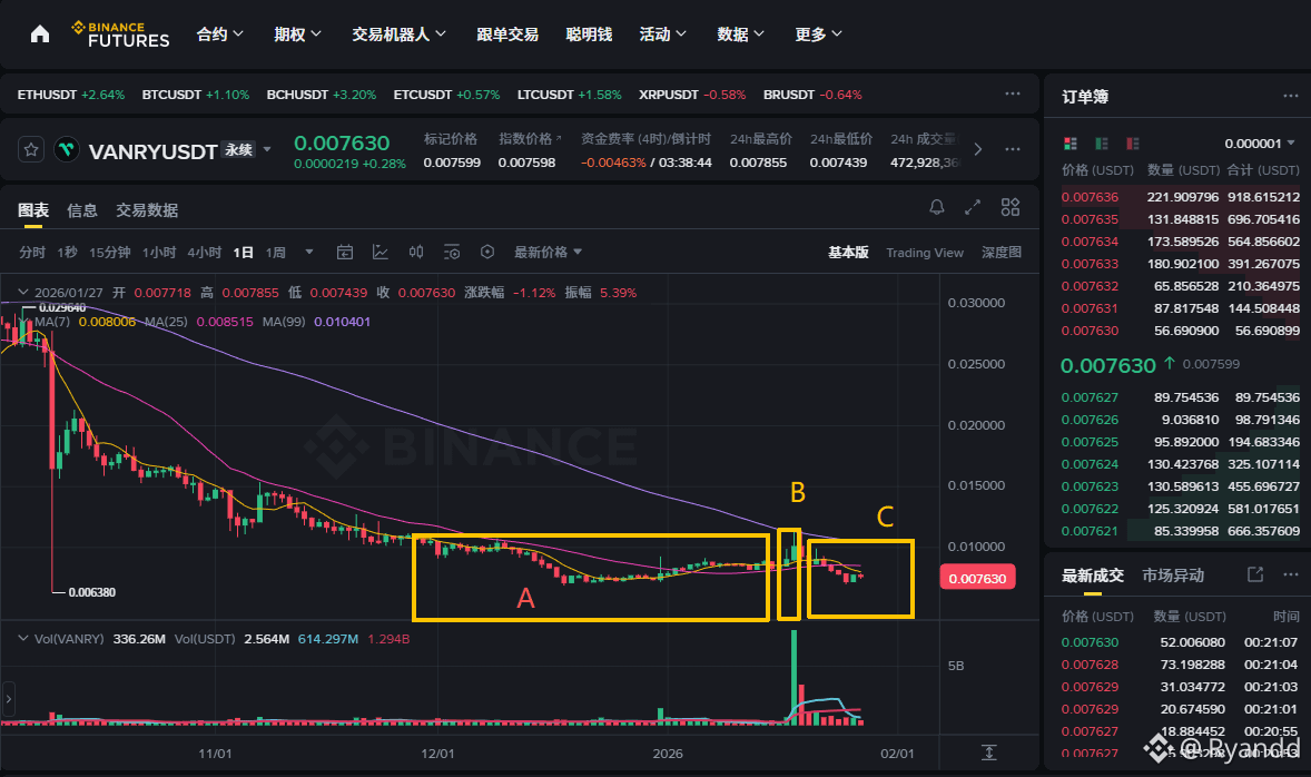 很多人看K线,只看到了红红绿绿的柱子,觉得眼花缭乱。但如果你静下心来,把它看作一个建筑工地的施工图,你就会发现其中的奥秘。长期来看,我们为什么应该考虑做多#vanar 的合约?答案就藏在这张图的三个关键区域里。