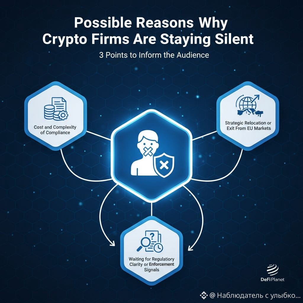 Например, Crypto.com исключил Tether (USDT) и несколько других токенов, для европейских пользователей в начале 2025 года для соблюдения новых правил. Это означает, что компании защищают прибыль и движутся быстрее, даже если это означает отказ от доступа на большой, но жестко регулируемый рынок ЕС. Для некоторых фирм молчание может просто сигнализировать о том, что Европа больше не соответствует их планам роста.