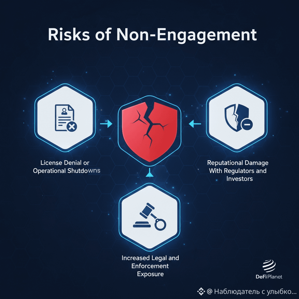 Неспособность взаимодействовать с регулирующими органами может обеспечить краткосрочную гибкость, но она подвергает криптофирмы эскалации юридических, операционных и репутационных рисков по мере ужесточения правоприменения MiCA.