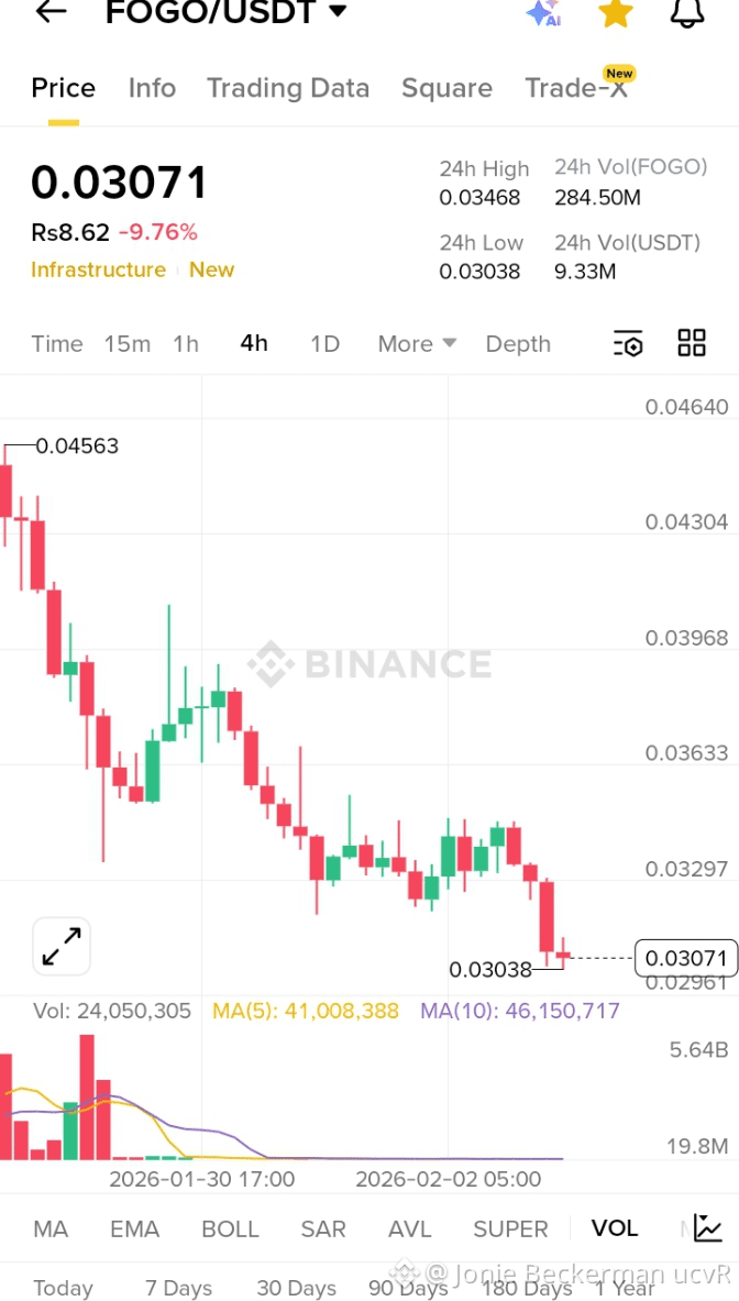 The current price of the FOGO token is approximately $0.034393 USD, with a 24-hour trading volume of over $41 million. The price is down slightly by about 0.41% in the last 24 hours, but has seen significant volatility since its mainnet launch in January 2026.