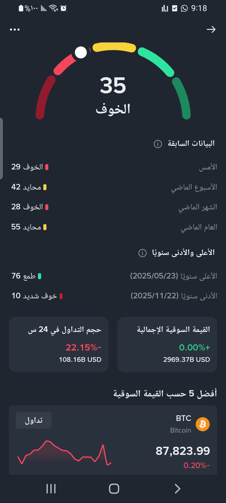 🟡 Çərşənbə axşamı: qorxu indeksi = 35