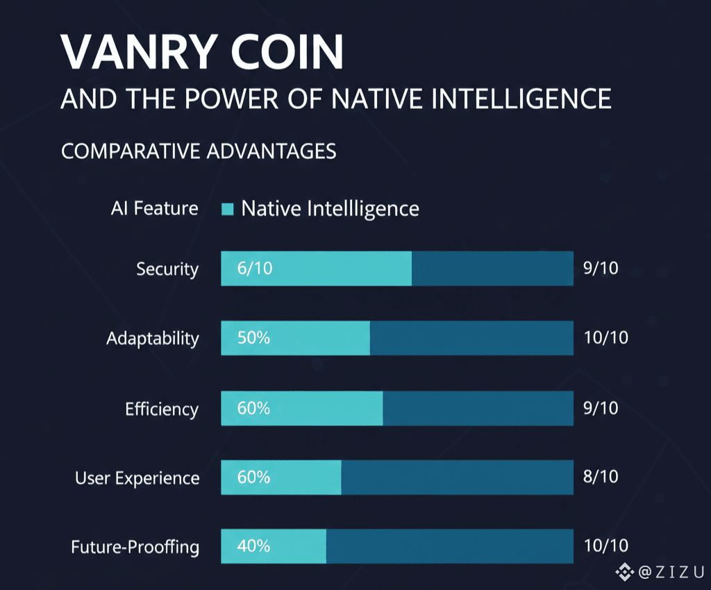 Security is another area where native intelligence shines. Traditional AI add-ons often need centralized computation or pooled data, which can create vulnerabilities. Vanry Coin’s intelligence is distributed and intrinsic. That means the network isn’t just fast and adaptive; it’s also resilient against attacks that exploit weak points in external AI systems. Personally, I see this as one of the most important advantages of native intelligence. It’s not just about convenience or efficiency, it’s about building a system that can be trusted to do its job under pressure.