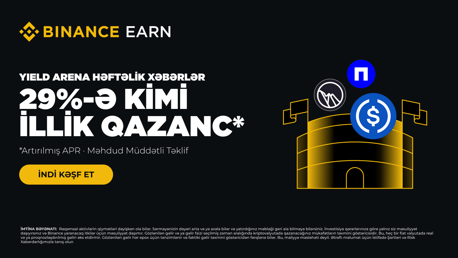 APR mükafatları Binance-in öz vəsaitlərindən ödənilir və cari bazar şəraitinin qiymətləndirilməsi və dəyərləndirilməsi əsasında müəyyən edilir. Bu kampaniya USDT/USDC-nin emitenti ilə heç bir şəkildə bağlı deyil.