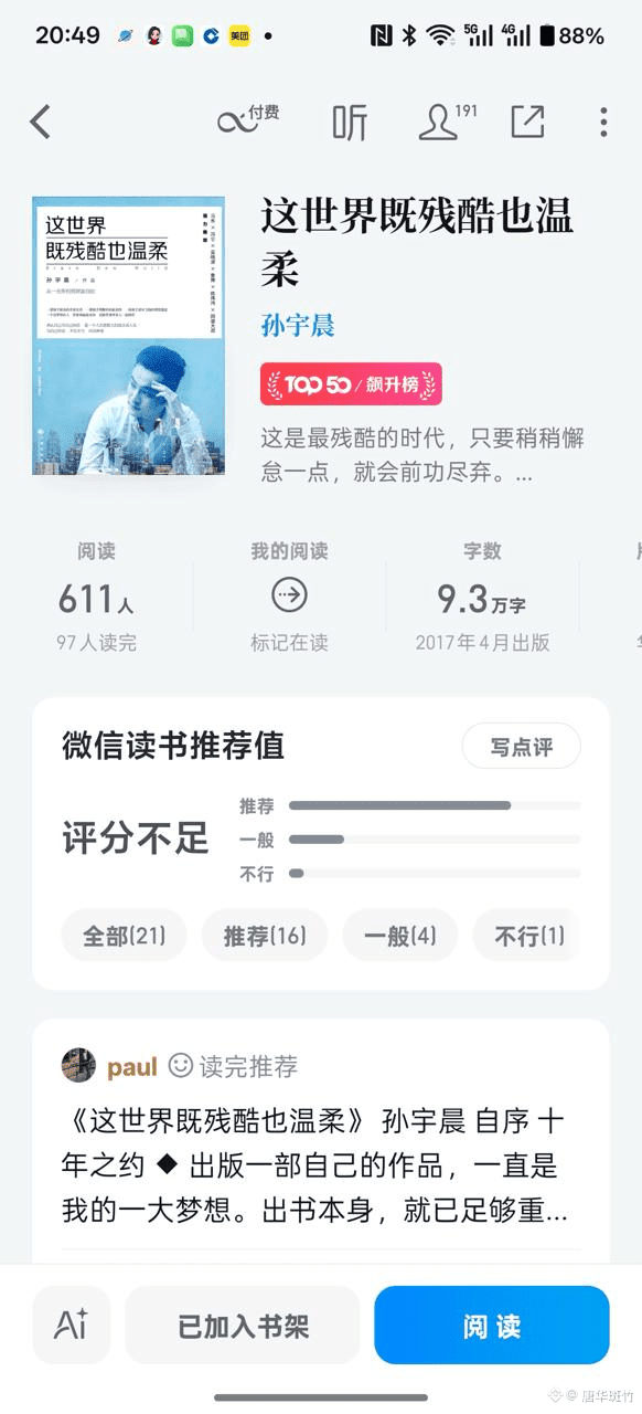 从2017年到2026年,九年时间足以验证一个战略的韧性。孙宇晨在新书中传递的“温柔”与“残酷”的辩证,或许正是其自身经历的投射:在充满变数的行业里,世界最终奖励的不是最响亮的口号,而是那个能持续、廉价地解决真实痛点——比如让全球转账变得像发信息一样简单方便——的解决方案。而这本新书迅速登上微信读书TOP50飙升榜,则可以看作是其商业实践在公众认知层面的一个现实映射。