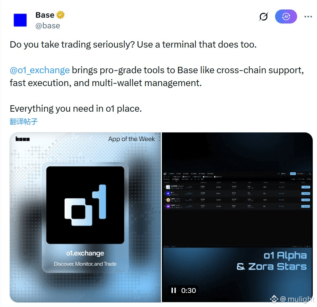 并且Base官方也一直在积极推广o1exchange平台,将其定位为Base生态中的专业交易工具,帮助用户在Base上实现高效操作。