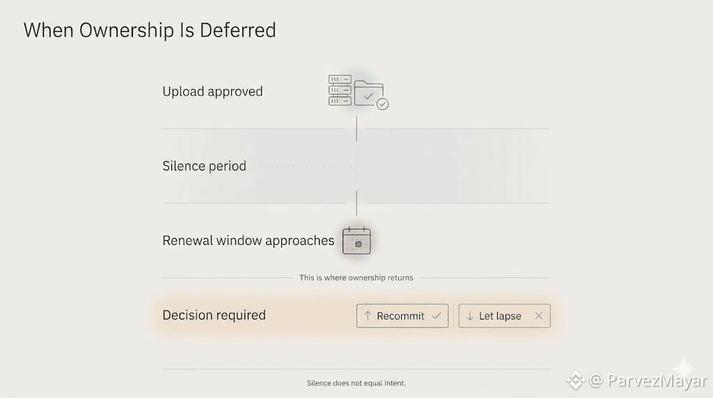 Most teams don't mean to let things expire. They just don't schedule intent. A blob arrives tied to a launch, a proof, a dataset someone swore would matter later. Weeks pass. The downstream system keeps working. Nobody touches it. On most storage, that's fine. Silence equals survival.
