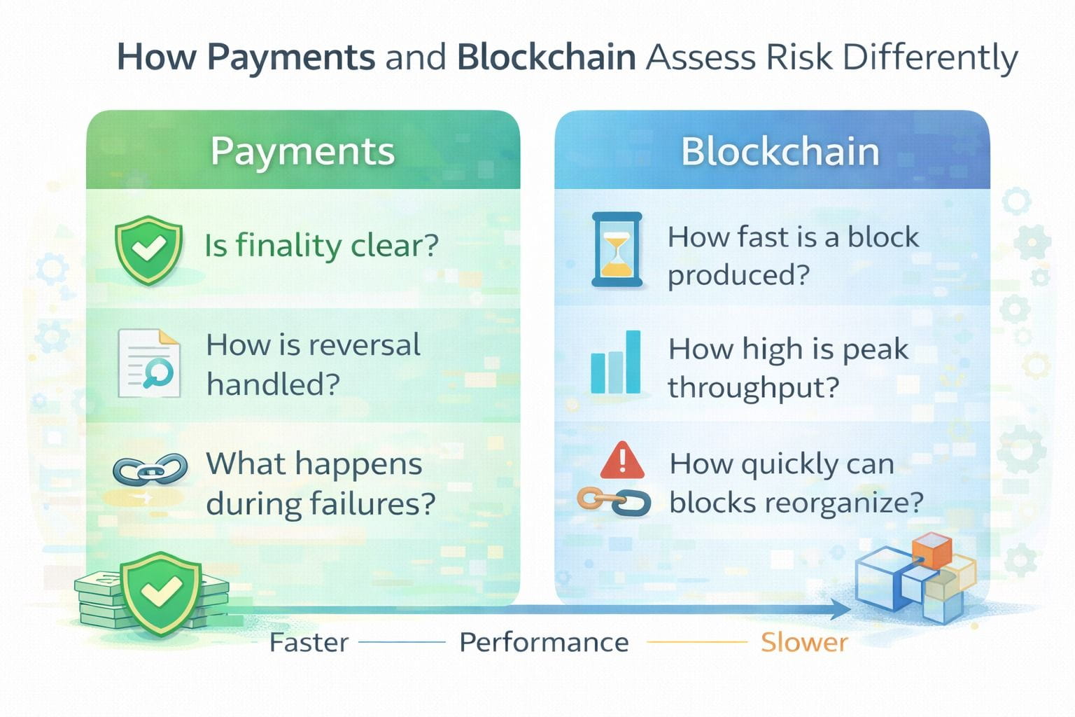 Blockchain payments are often evaluated through technical metrics block time throughput and confirmation speed. While these numbers are easy to compare they rarely describe how risk actually behaves in payment systems. Payments are not just about moving data quickly. They are about transferring value with certainty. That distinction changes how risk should be modeled.