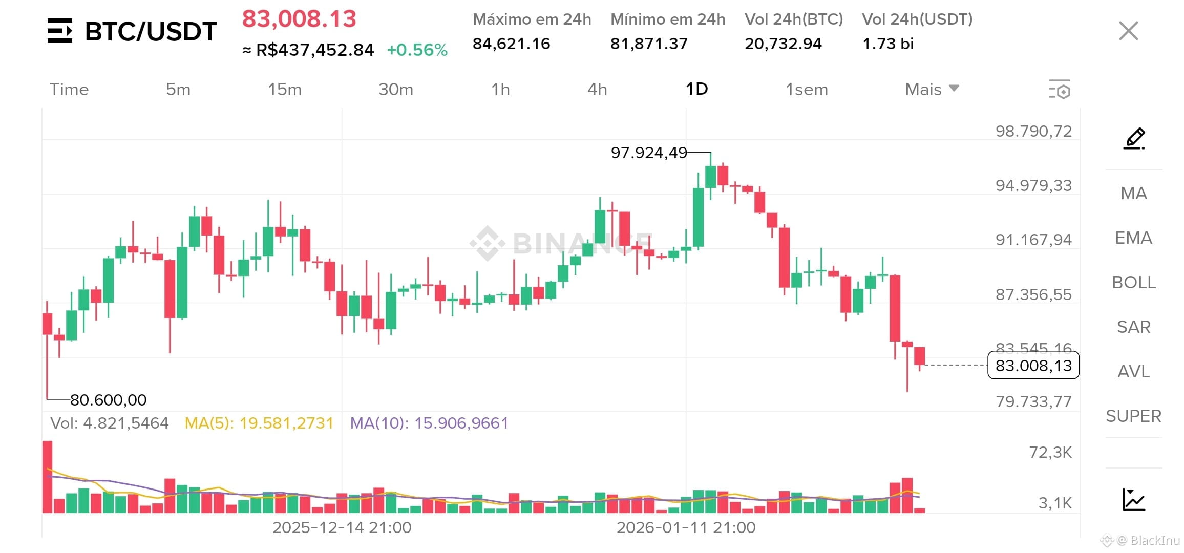 O mercado parece estar em uma fase de absorção, tentando estabelecer uma base após a volatilidade. O volume reduzido em relação ao pico da venda pode indicar uma diminuição no ímpeto de baixa. No curto prazo, o mais provável é uma continuação da consolidação entre 82,000 e 84,600. Um rompimento claro para fora desse range, acompanhado de volume crescente, deverá definir a próxima direção significativa.