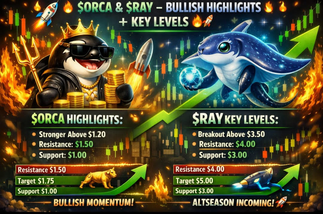 Trh jasně ukazuje aktivní kupující, a oba $ORCA a $RAY jsou umístěny ve svých klíčových zónách — oblasti, kde se obvykle začínají silné směrové pohyby 👀💥