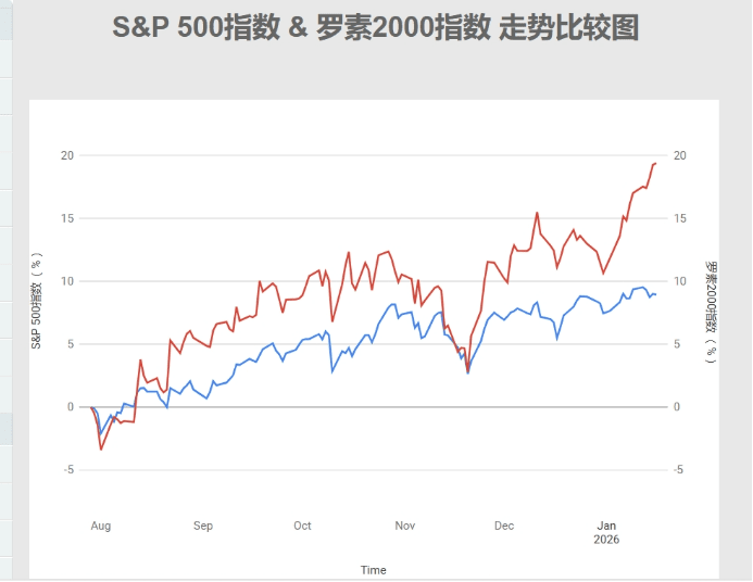V poslední době existuje na trhu jev, který stojí za hlubší diskusi: Malé akcie na americkém trhu (reprezentované indexem Russell 2000) již nějakou dobu tiše překonávají index S&P 500. To se zdá být vnitřní záležitostí tradičního finančního trhu, ale můj názor je, že to může být klíčová „přední hlídka“ pro pozorování, zda se celosvětová riziková preference může skutečně rozšířit do hloubky kryptoměn.