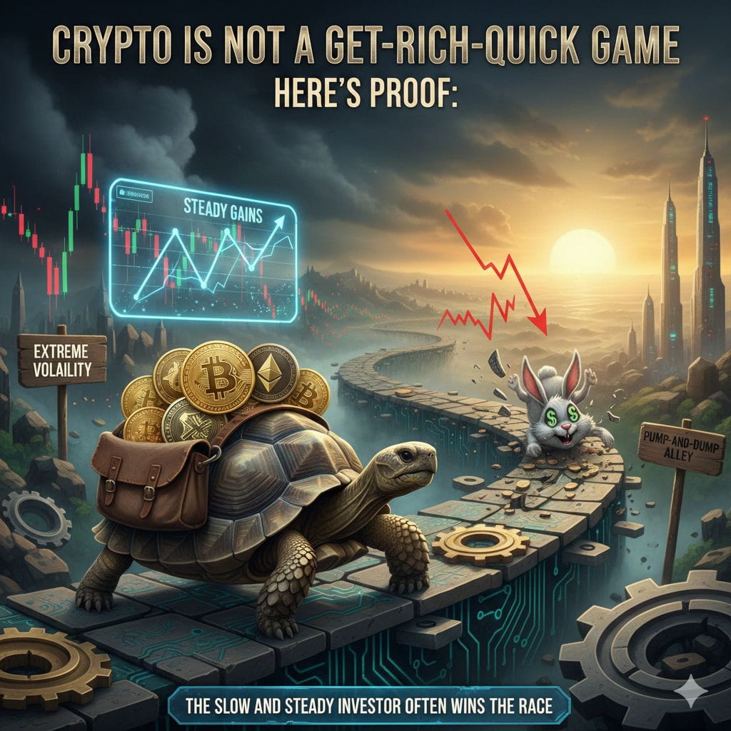 In the world of cryptocurrency, stories of overnight millionaires often make headlines. It’s easy to look at skyrocketing coins and think that getting rich quickly is the norm. But the reality is very different. Crypto is a long-term game that rewards patience, research, and strategy, not luck.