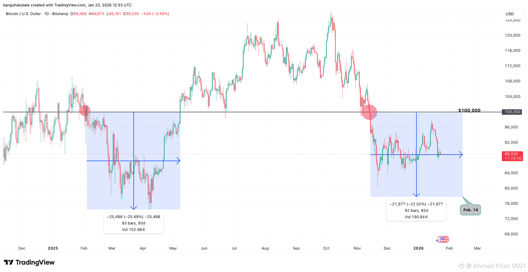 The last time BTC/USD dropped below $100,000, it reclaimed the level after 93 days following a 25.5% drawdown.Â