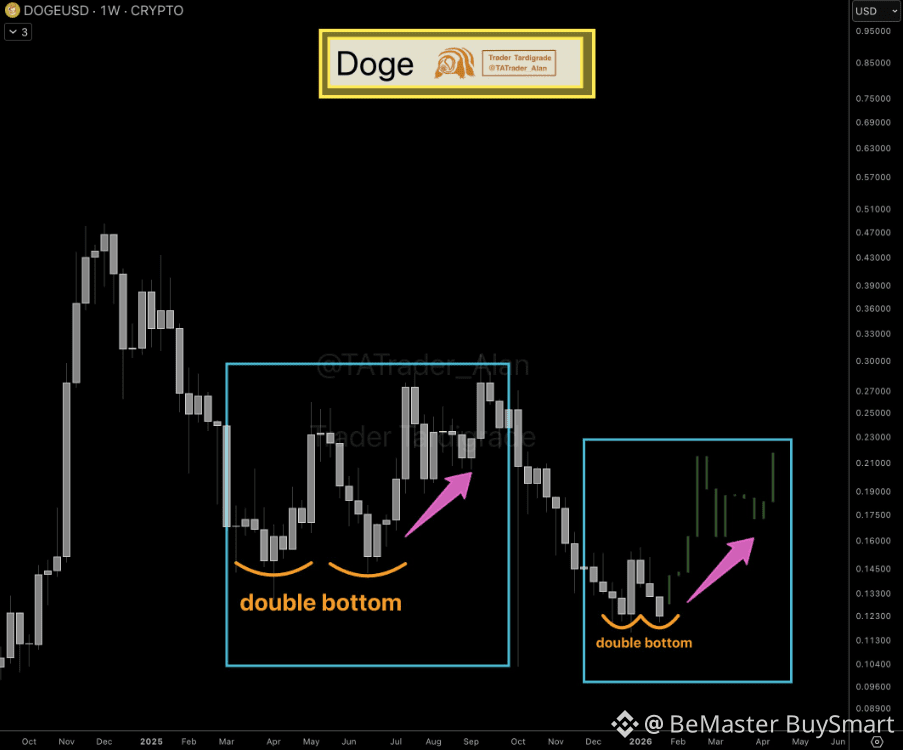 👉 This matters beyond just DOGE itself. When you get these kinds of patterns appearing on weekly charts for major coins, it often shifts how people feel about the broader crypto market. A double bottom on this timeframe could signal DOGE is transitioning from falling to holding steady - but only if price actually stays above those recent lows. Whether history repeats itself here remains to be seen, but the familiar structure definitely puts Dogecoin back on the radar for anyone tracking longer-term trends.
