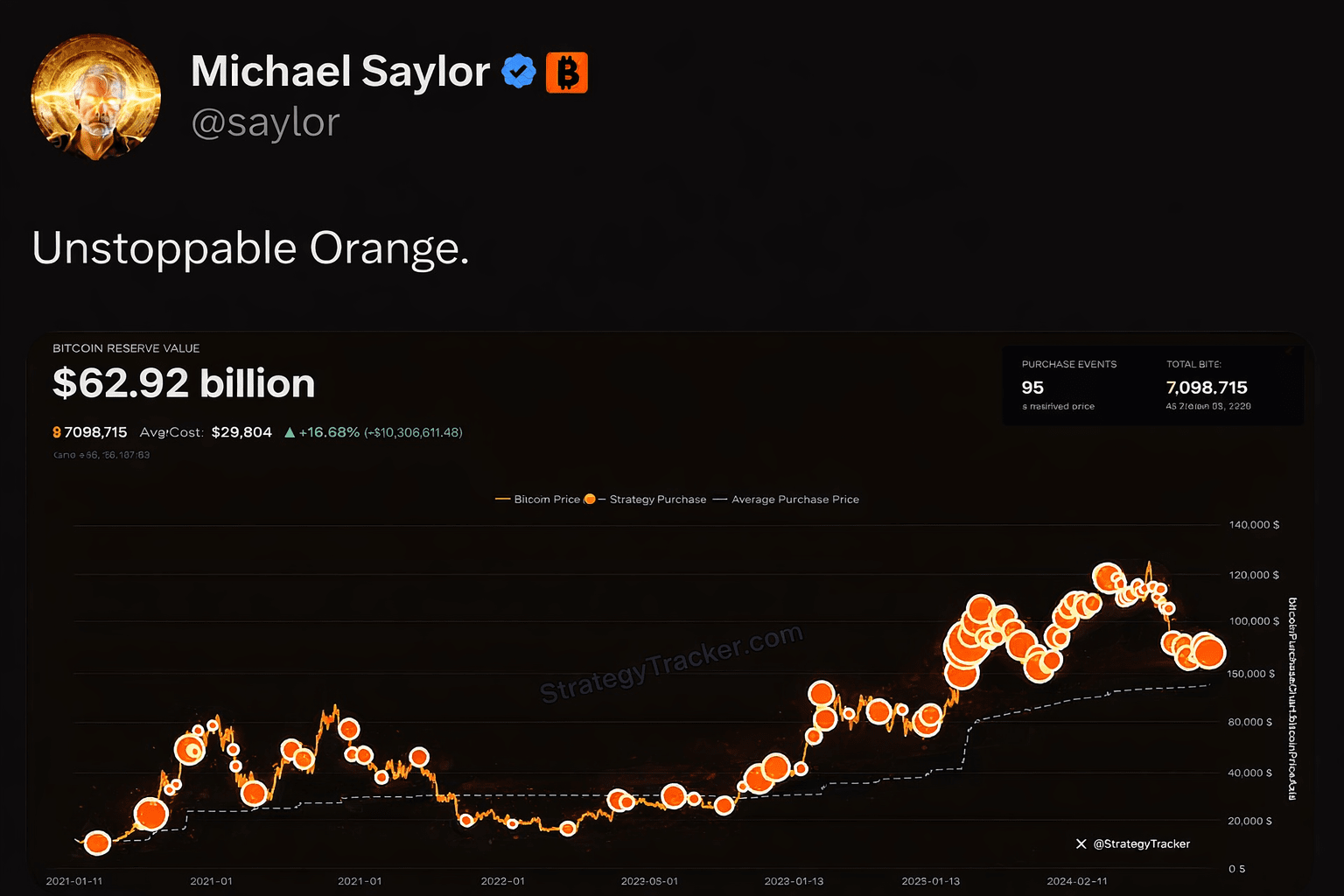 Když se podíváte na historii Strategie, můžete vidět konzistentní filozofii: dlouhodobé akumulování Bitcoinu, bez kolísání podle krátkodobých cyklů.