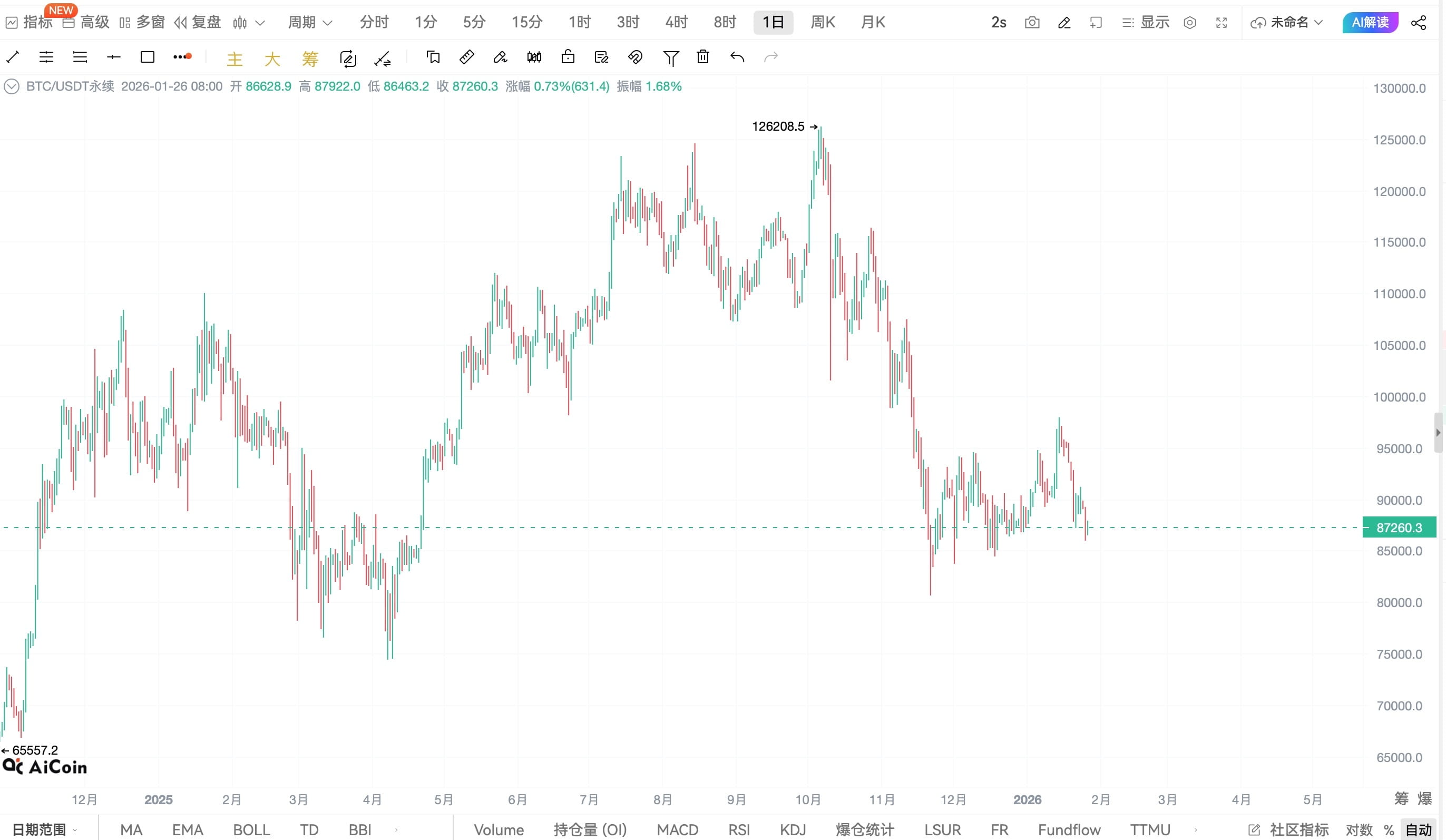 Aktuální cena se vrátila nad 87,000 a osciluje