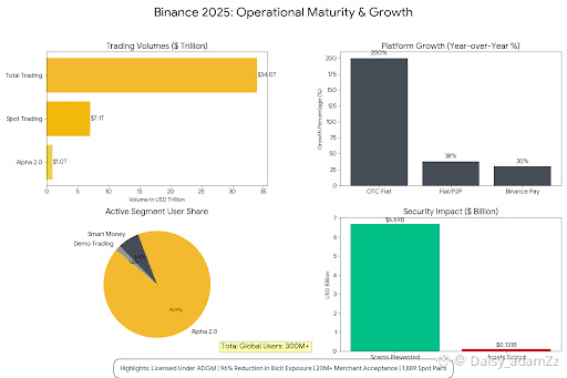 Binance’s 2025 was focused on scale, regulation, and operational maturity. The platform handled large volumes, expanded regulatory coverage, and invested heavily in compliance and user protection. Growth was steady and measurable, not driven by short-term market excitement.
