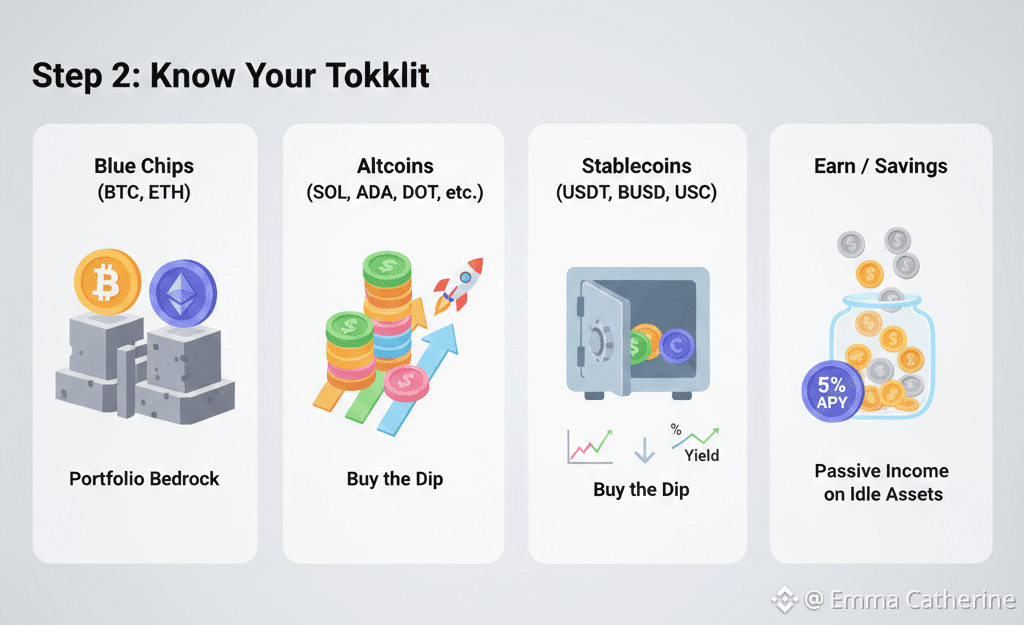 Stablecoins: USDT, BUSD, USDC - Your "cash," earns yield, buys dips.
