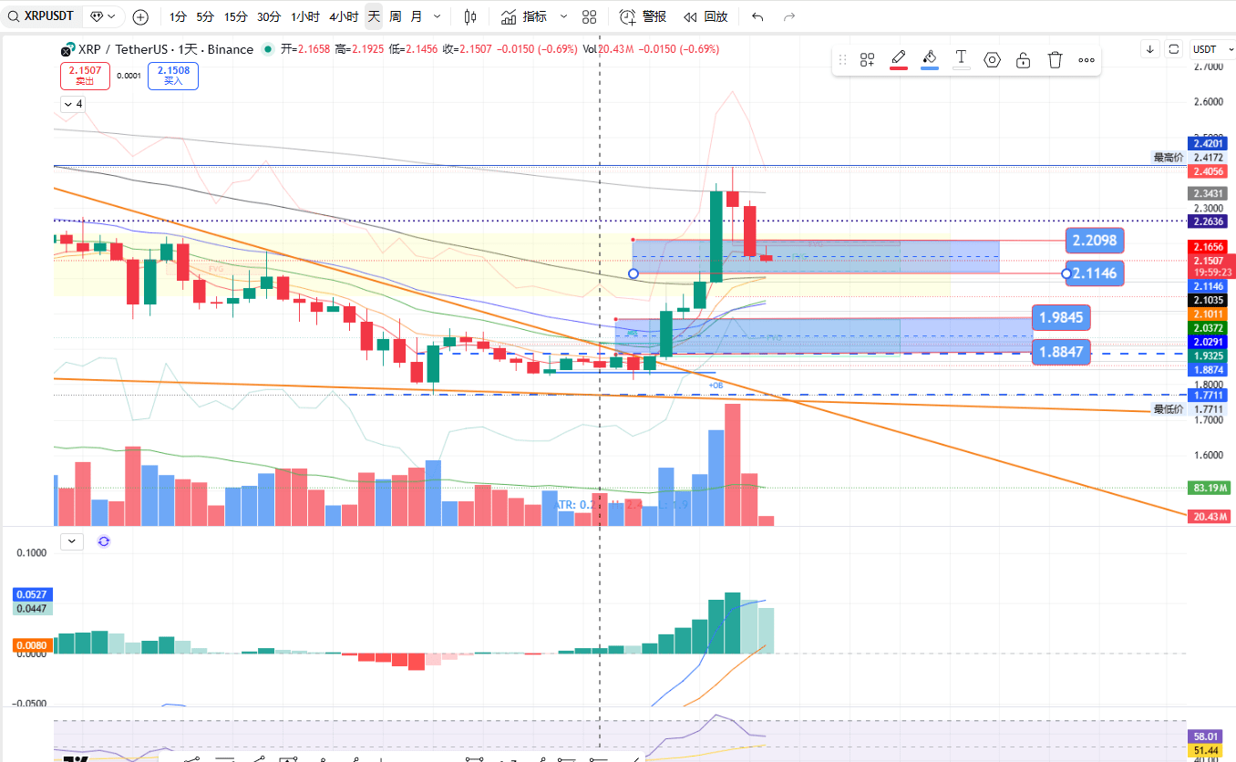 2. $XRP (Tageschart, aktueller Preis≈2.1507)