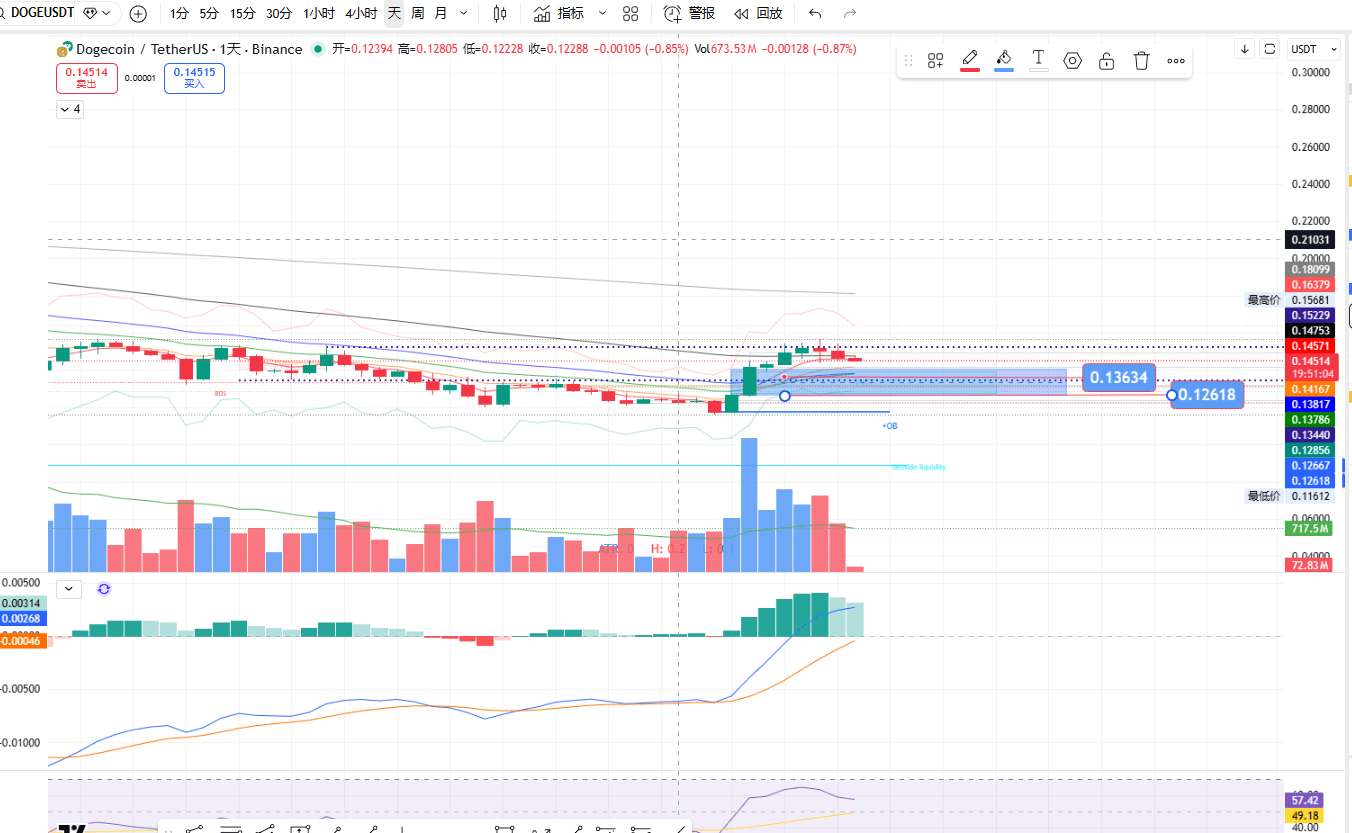 3. $DOGE (Tageschart, aktueller Preis≈0.1445)
