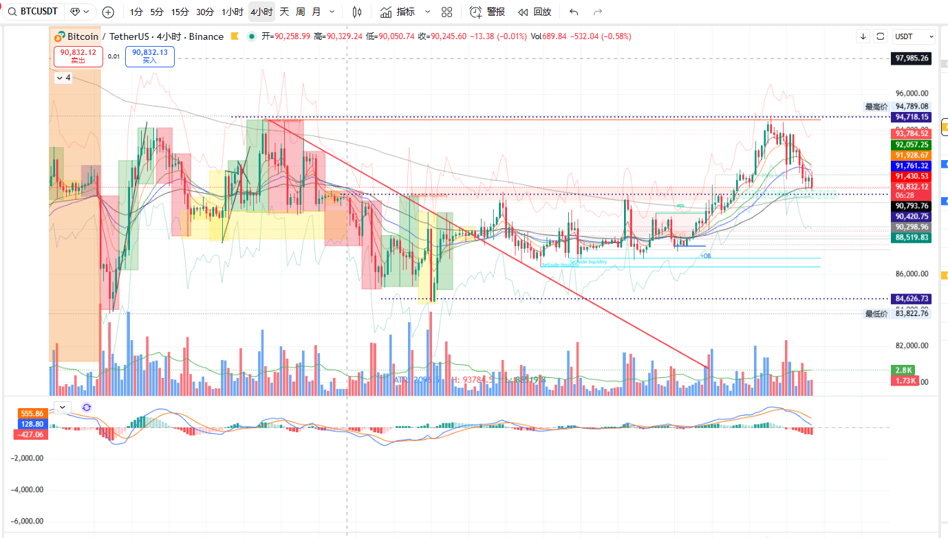 1. $BTC (4-Stunden-Chart, aktueller Preis≈90815)