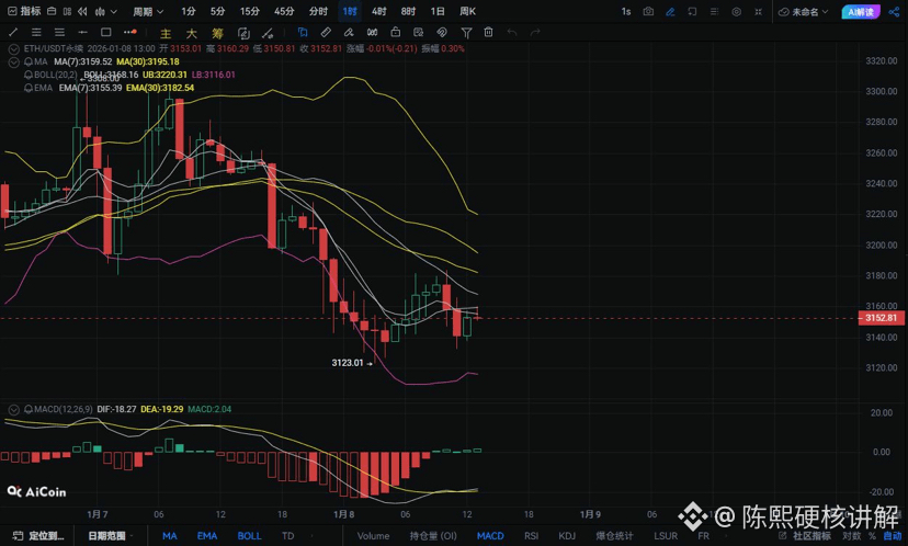 1月8日的致命一击让价格砸至3123.01美元,但随后的48小时内,ETH就像被无形之手钉在了当前区间。