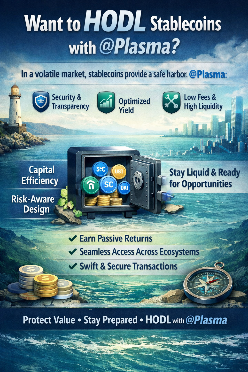 In einem volatilen Kryptowährungsmarkt bieten Stablecoins einen ruhigen Hafen – und @Plasma wurde entwickelt, um das Halten von ihnen intelligenter, sicherer und effizienter zu gestalten. Egal, ob Sie Kapital zwischen den Trades parken oder langfristig Wert erhalten möchten, Plasma konzentriert sich auf Zuverlässigkeit, Transparenz und ertragsbewusste Infrastruktur. Mit optimierter Liquiditätslenkung und risikobewusstem Design hilft Plasma Stablecoin-Inhabern, unnötige Risiken zu vermeiden, während sie bereit bleiben, Mittel bereitzustellen, wenn sich Gelegenheiten bieten.
