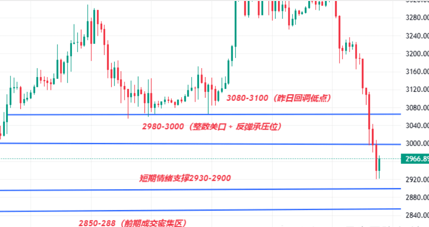 Wenn der Preis im Bereich von 2920-2950 US-Dollar stabilisieren kann, werden die Widerstände bei 3000 US-Dollar und 3050 US-Dollar erwartet, jedoch wird der allgemeine Abwärtstrend den Raum für eine Erholung einschränken; sollte die Unterstützung durchbrochen werden, wird ein weiterer Rückgang auf 2800 US-Dollar erwartet. In der Handhabung wird empfohlen, eine bärische Sichtweise beizubehalten, solange der Preis nicht stabil über 3000 US-Dollar ist.
