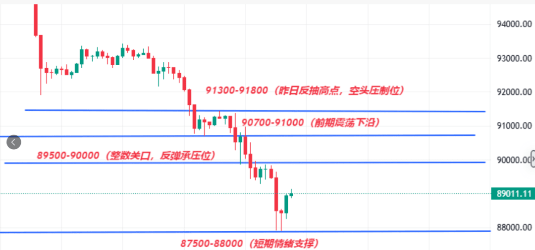 Auf vier Stunden Basis zeigt der RSI Überverkauf und eine Umkehr, und es gibt eine Preis-Marken-Divergenz, was technischen Reparaturbedarf signalisiert, jedoch befindet sich der MACD weiterhin im bärischen Volumenstatus. Die Widerstände sind nacheinander bei 90000 US-Dollar, 91435 US-Dollar (Hochpunkt der gestrigen Erholung) und 94000 US-Dollar zu beobachten. Solange der Preis nicht effektiv über 94000 US-Dollar zurückgewinnt, sind alle Erholungen schwache Rückzüge und es ist nicht ratsam, blind auf Long zu setzen.