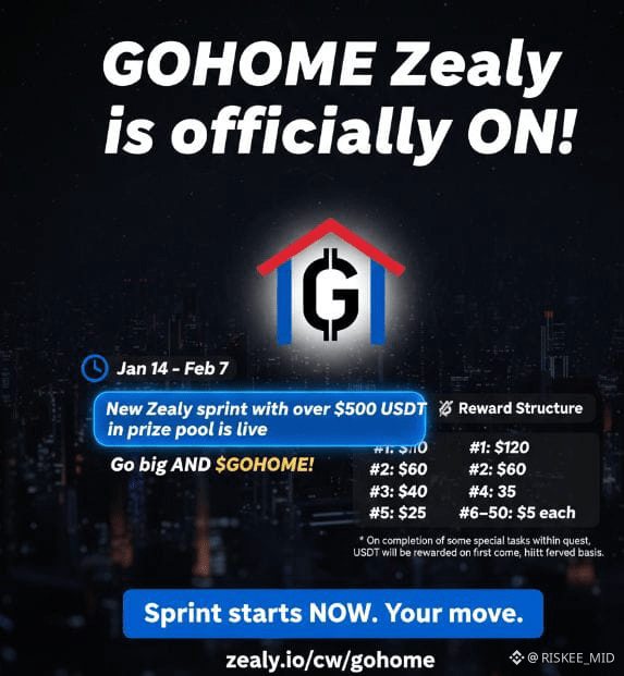 GOHOME Zealy is officially live. From Jan 14 → Feb 7, the community sprint brings a $500+ USDT prize pool and a range of tasks designed for speed, creativity and engagement. Below is a polished, professional guide summarizing the sprint, how rewards are distributed, how to participate, and tips to improve your chances.