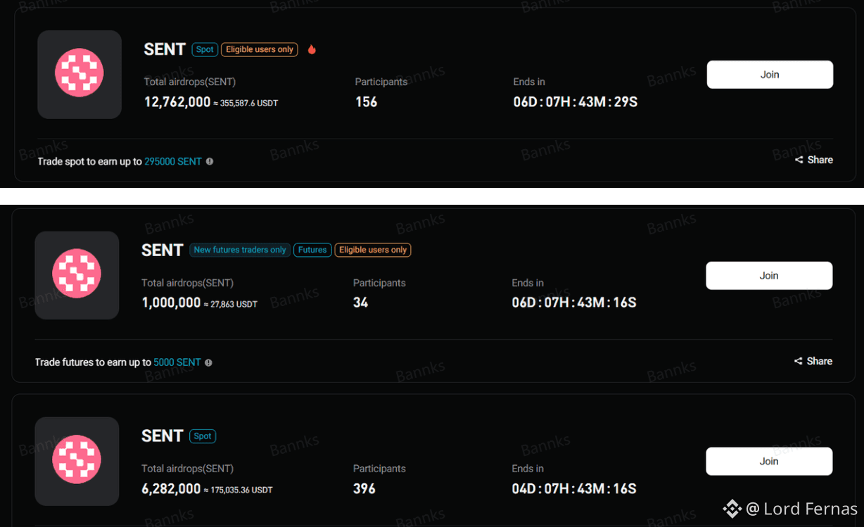 Esse processo me levou a $SENT , O token nativo do Sentient, um projeto construindo infraestrutura de IA descentralizada e de propriedade comunitária que se alinha closely com valores Web3. Estou atualmente participando do evento Bitget CandyBomb, que segue até o 29º com 19.044.000 $SENT em recompensas. Dado meu sucesso passado com plays de qualidade CandyBomb, isso parece uma forma inteligente e de baixo risco de se posicionar para um projeto que realmente tem uma visão de longo prazo.