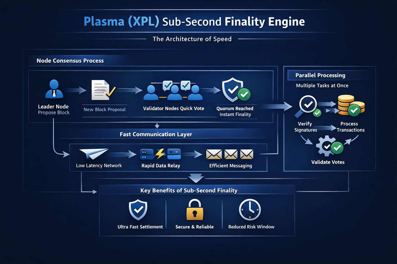 Speed comes from removing wait time. You don’t want ten steps. You want two or three. And you want them to be small steps. A clean propose → vote → lock loop. Short time limits. Quick leader change if the proposer is slow. No sitting around staring at a spinning wheel.