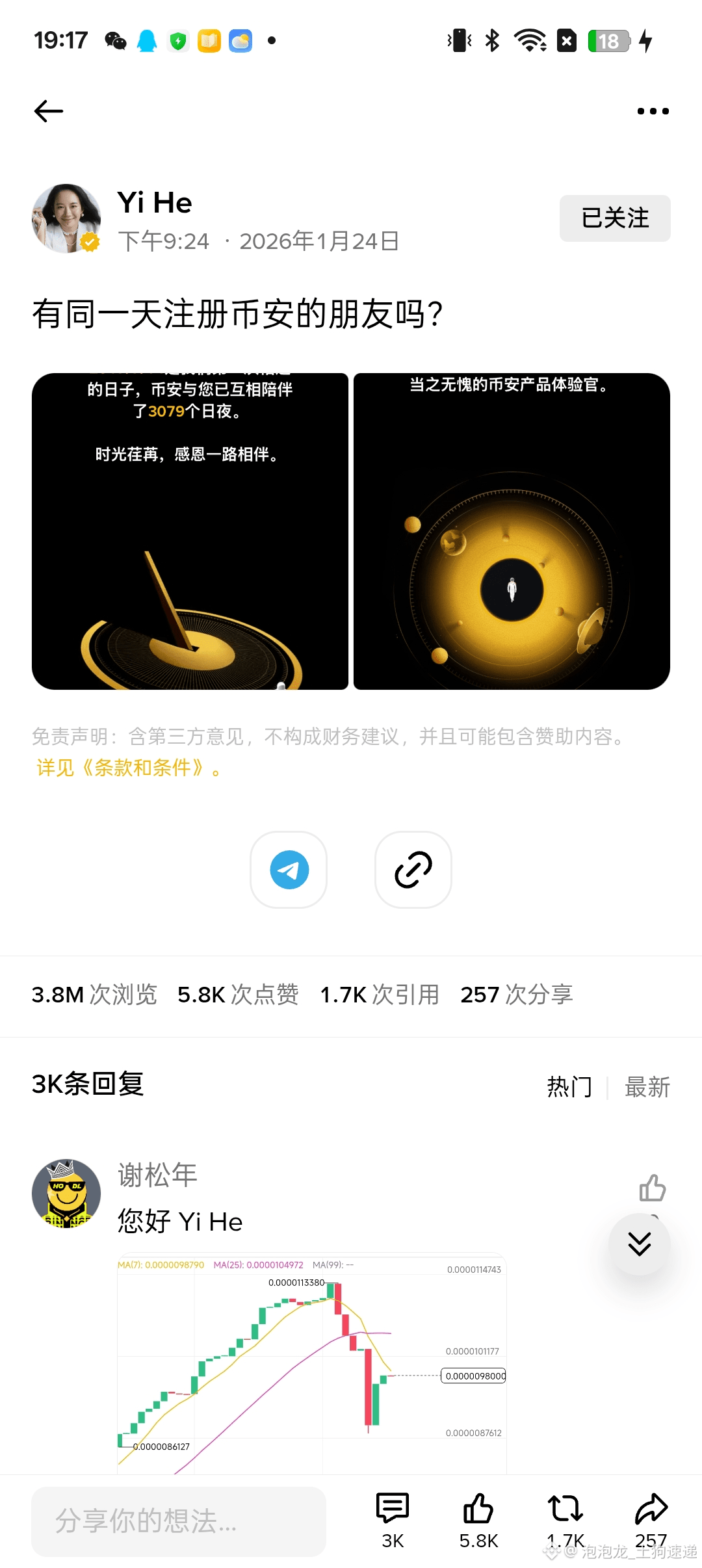 #2017714 :2017年7月14日对何一来说意义重大,这一天币安迎来了现任首席执行官,这一天她与赵长鹏在上海联合创立了币安,开启了她在币圈的又一段重要征程。