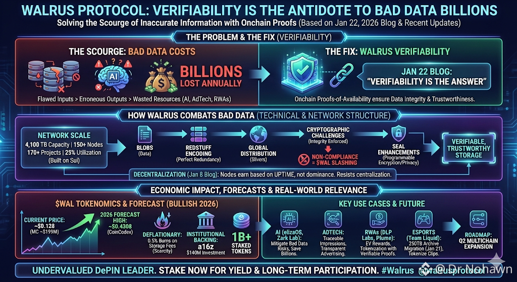 The scourge of bad data—inaccurate or unreliable information—continues to cost global industries billions, particularly in AI where flawed inputs lead to erroneous outputs and wasted resources. @walrusprotocol’s insightful January 22, 2026, blog “Bad data costs billions. Verifiability is the answer” articulates how onchain proofs-of-availability provide a robust solution, ensuring data stored on their decentralized platform remains intact and trustworthy.