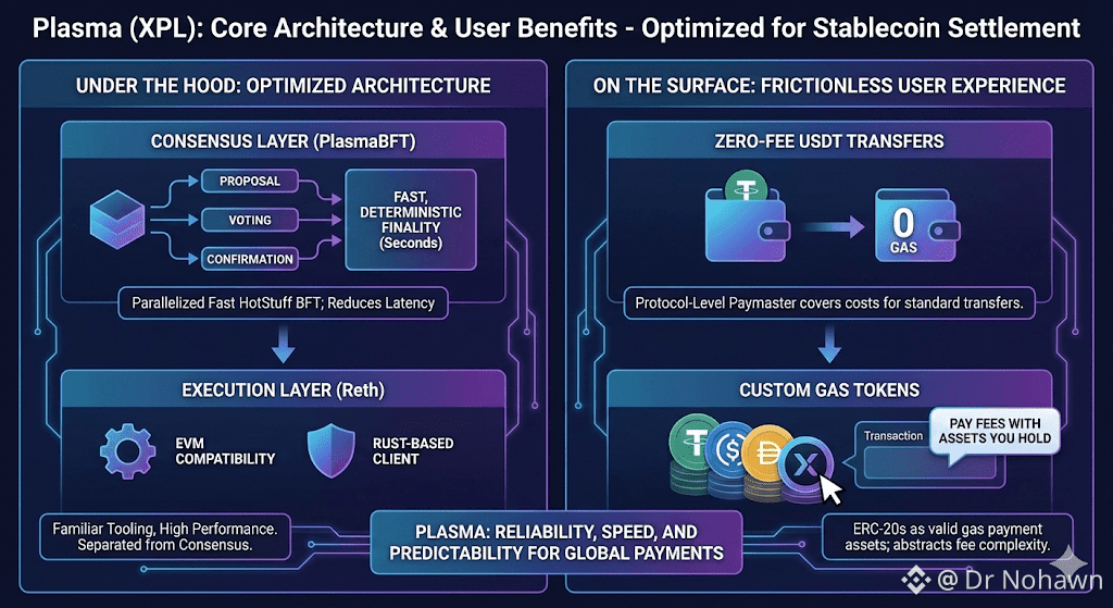 Plasma cleanly separates consensus from execution. While PlasmaBFT handles ordering and finality, the execution layer runs on Reth, a Rust-based Ethereum client. This provides full Ethereum Virtual Machine compatibility, allowing developers to deploy Solidity smart contracts and use existing Ethereum tooling without modification. From a builder’s perspective, Plasma feels familiar, but under the hood it behaves very differently from congested general-purpose chains.