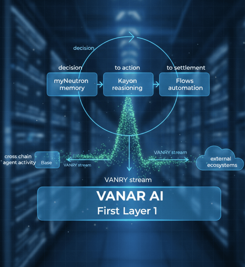 VANRY bildet die Grundlage für die Abwicklung innerhalb dieses intelligenten Kreislaufs. Wenn ein Agent handelt, kann Wert bewegt werden, ohne dass ein Mensch eingreifen muss, um den Prozess abzuschließen. Das klingt klein, bis man es entfernt. Dann wird alles zu einem Vorschlag anstatt zu einem Ergebnis.