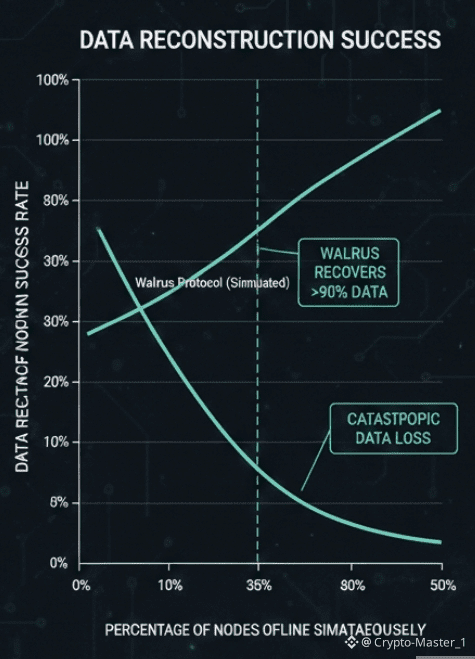 There’s real data backing this philosophy. In testing and early deployments, Walrus has demonstrated the ability to recover full data sets even when a large portion of nodes go offline simultaneously. In some simulations, over one third of storage providers disappeared, and the system still reconstructed data without user intervention. That number matters because real networks don’t lose nodes one at a time. They lose them in clusters. Regions go dark. Operators rage quit.
