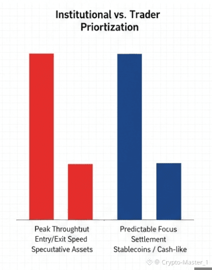 What this reveals is not that traders are wrong. They are responding rationally to incentives. It reveals that institutions are optimizing for a different time horizon entirely. They measure speed in weeks and quarters, not minutes. They care less about peak throughput and more about how systems behave under stress. Plasma’s design choices make more sense when viewed through that lens.