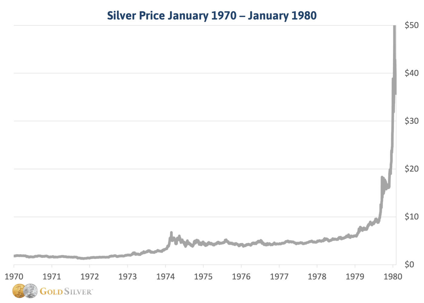 Innerhalb eines Jahres, bis zum 17.–18. Januar 1980, stieg der Silberpreis auf fast 49–50 $ pro Unze – fast ein 8-facher Anstieg in sehr kurzer Zeit.