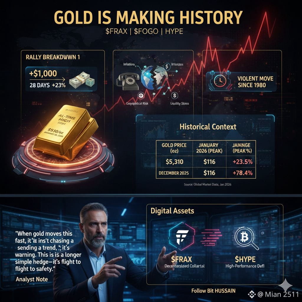Analyst Note: "When gold moves this fast, it isn’t chasing a trend; it’s sending a warning. This is no longer a simple hedge—it’s a flight to safety."$HYPE $BTC $FRAX #TokenizedSilverSurge #TSLALinkedPerpsOnBinance #StrategyBTCPurchase